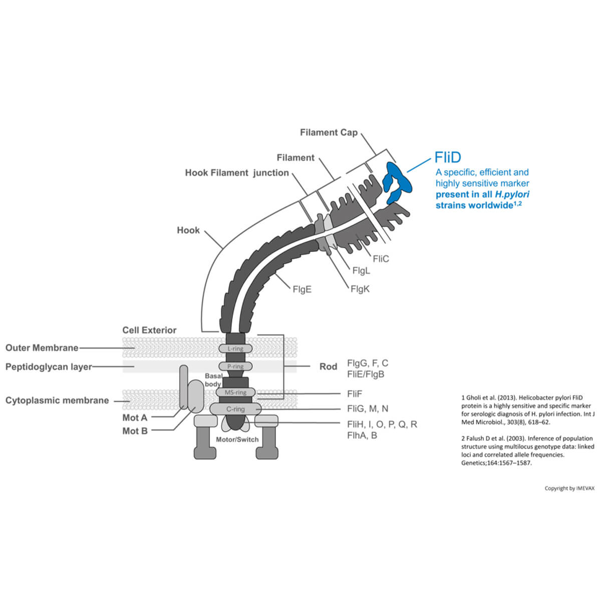 FLID یک عنصر ضروری در مونتاژ تاژک هلیکوباکتر پیلوری است. این یک نشانگر کارآمد، بسیار حساس و اختصاصی است که در تمام سویه های هلیکوباکتر پیلوری در سراسر جهان وجود دارد.